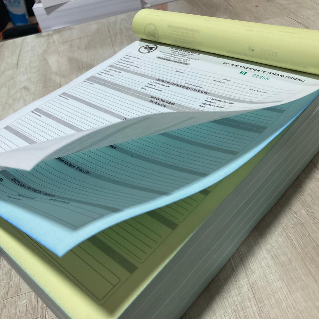 $4.165 – $19.040 IVA incluido- Talonarios de diferentes tamaños, impresos por una cara en papel autocopiativo, con pre-picado a elección, foliados (numerados), impresos a 1 color (Tinta ecológica negra).